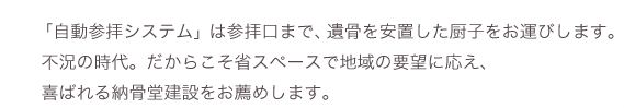 時代を見越す【自動参拝システム】全く新しい納骨堂の提案です。